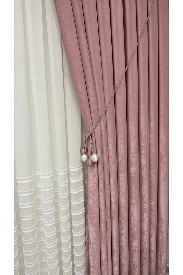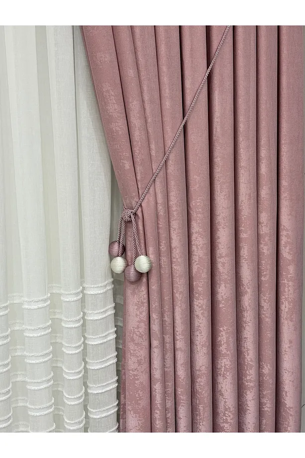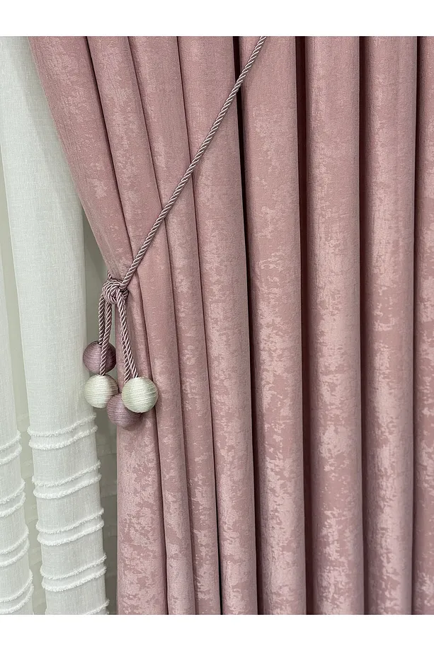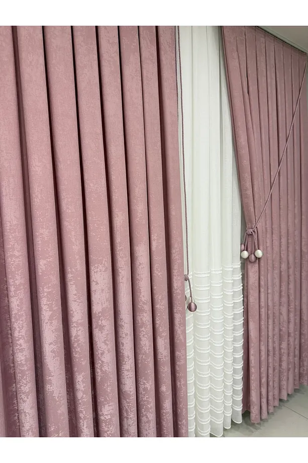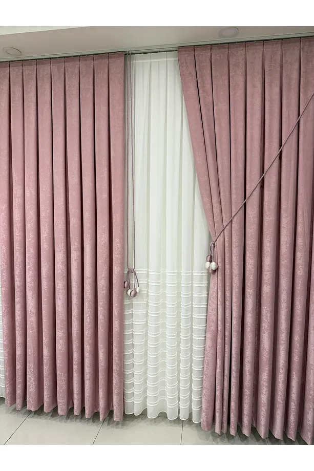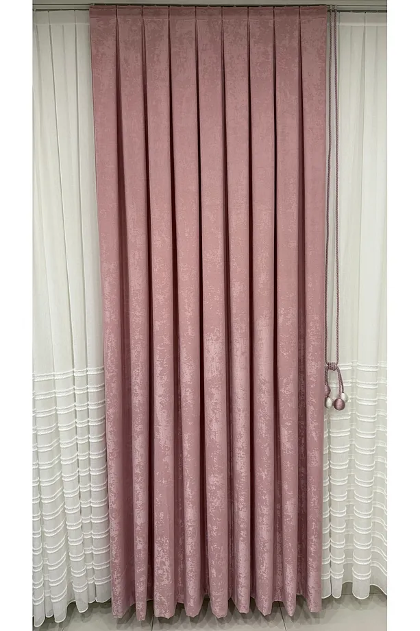 Kadife Dokulu Lüks Fon Perde Pudra Sık Pile (Tek Kanat)