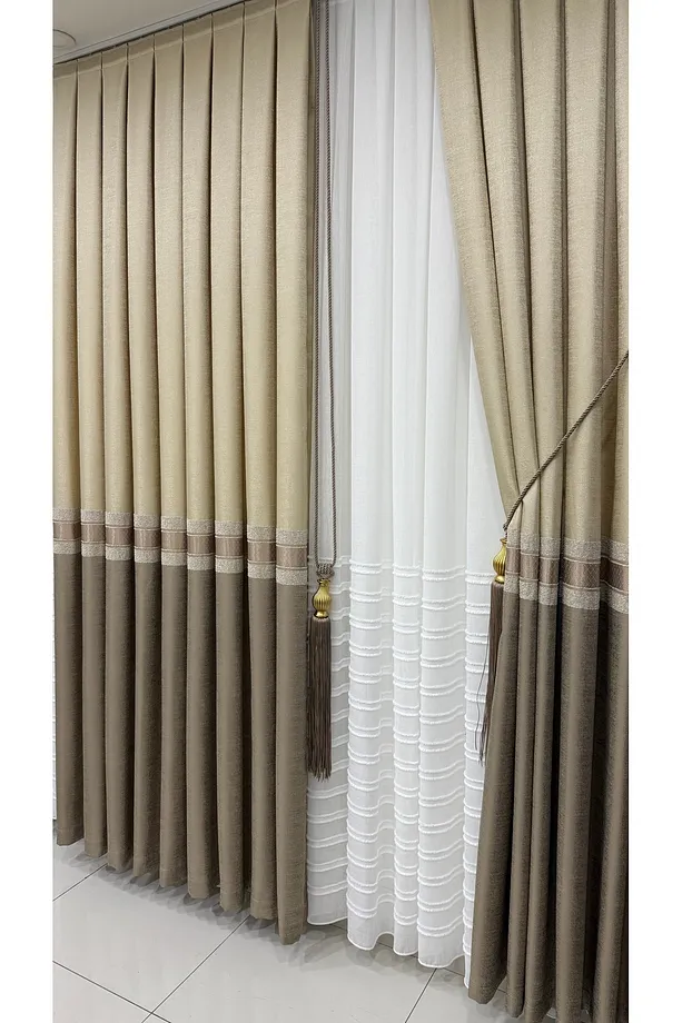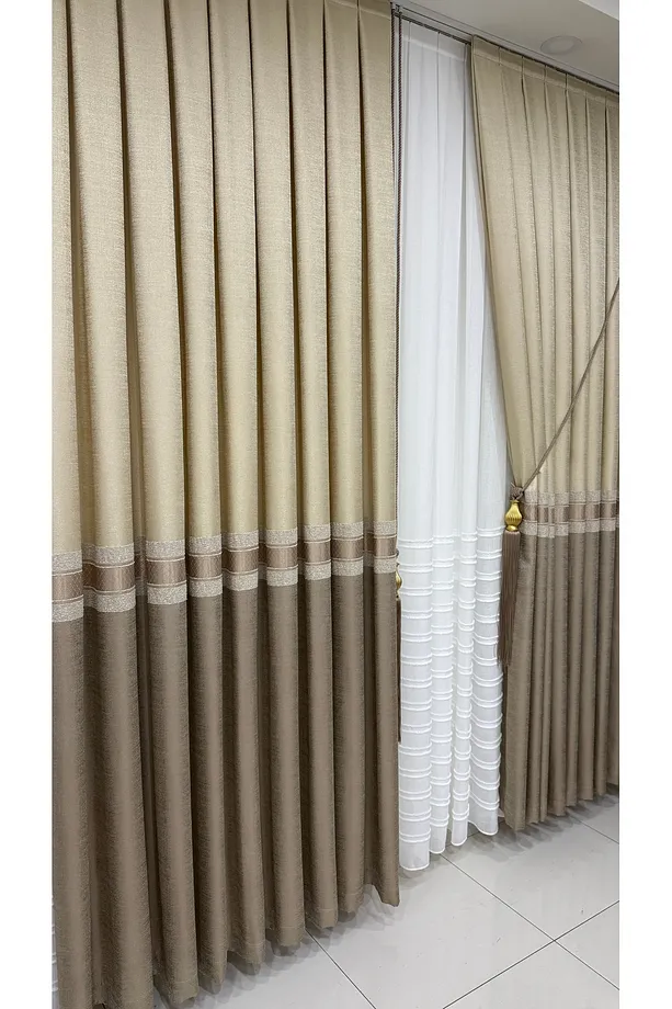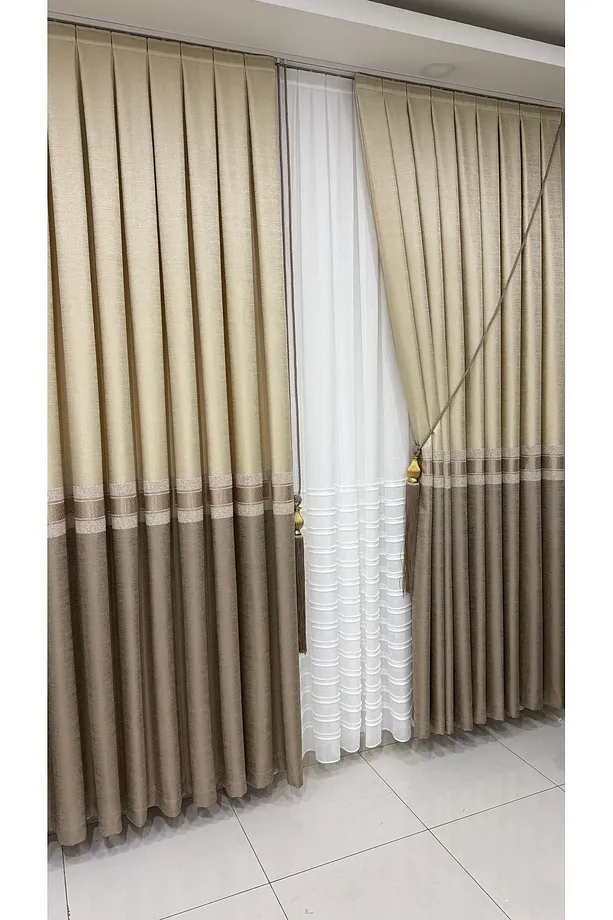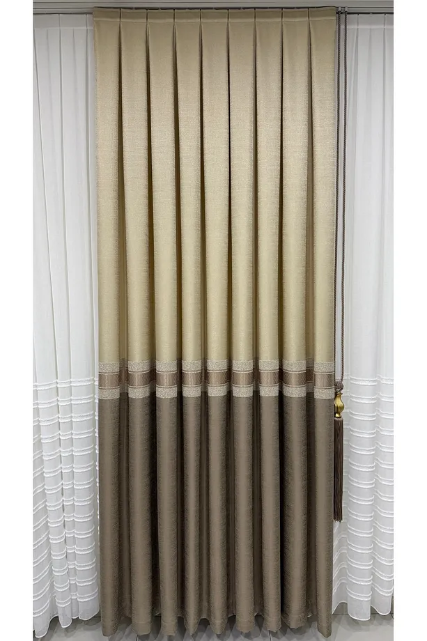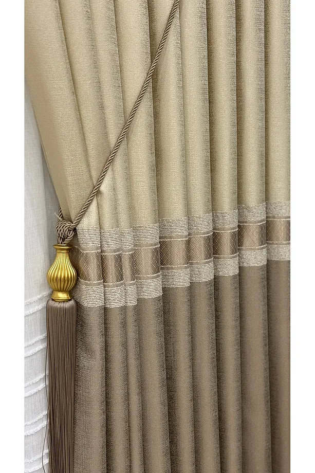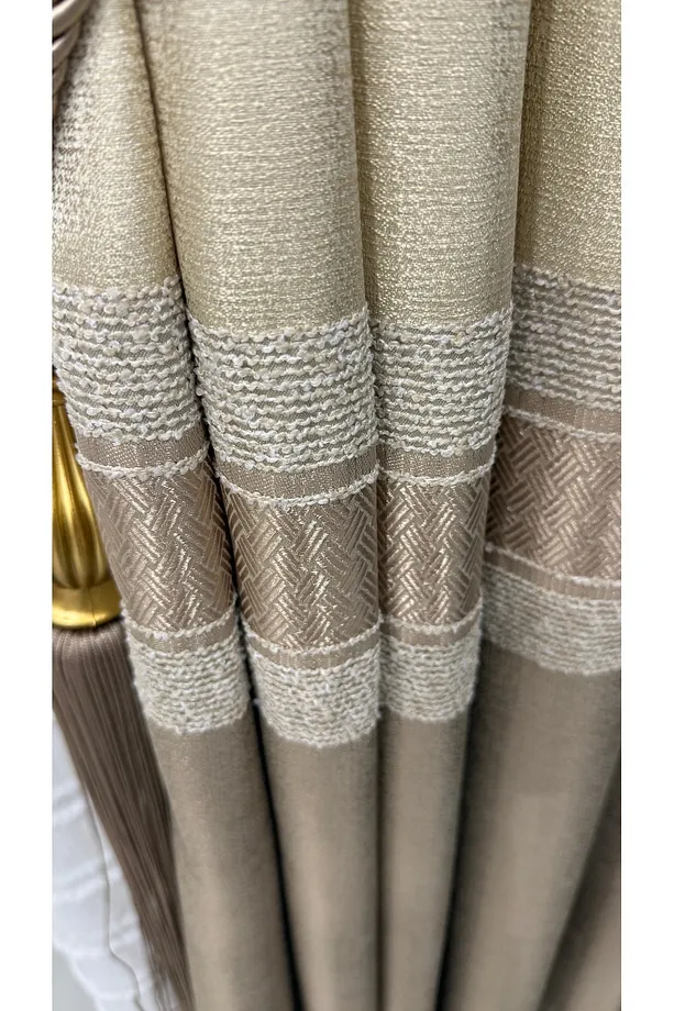 Pano Fon Perde Krem Cappuccino Şeritli (Tek Kanat)