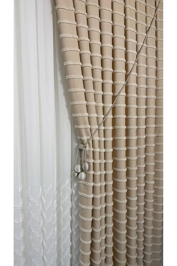 Pano Fon Perde Zarif Püsküllü Bej (Tek Kanat)