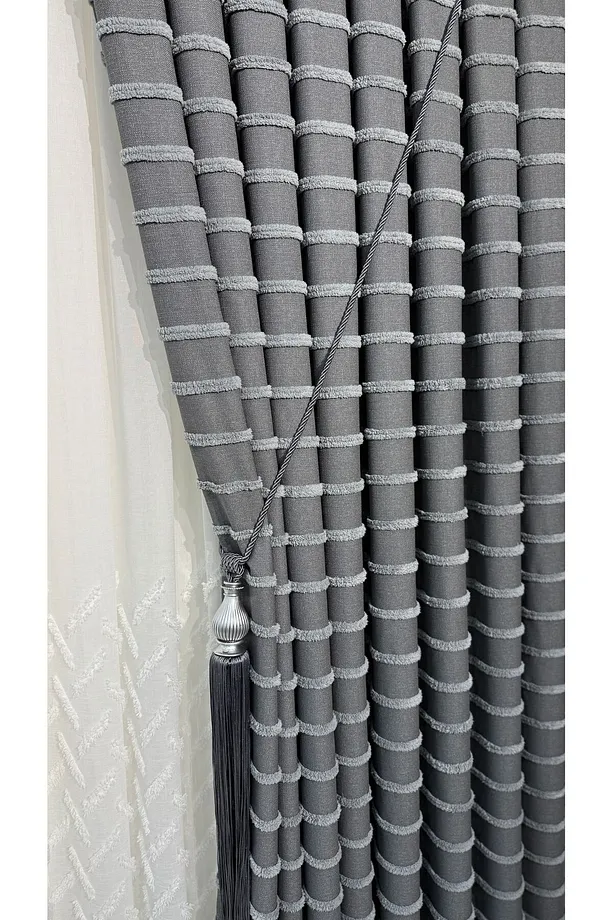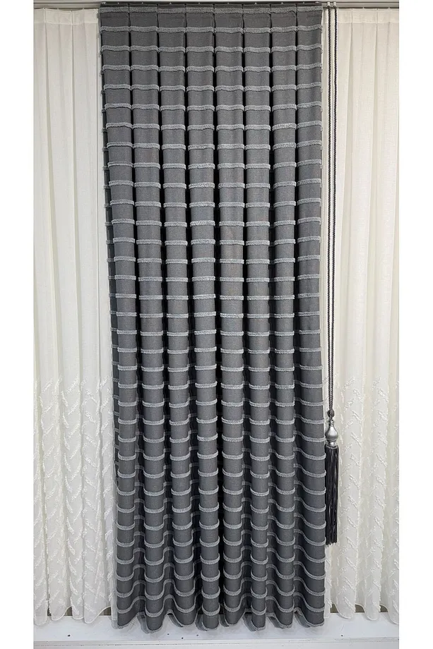 Pano Fon Perde Zarif Püsküllü Gri (Tek Kanat)